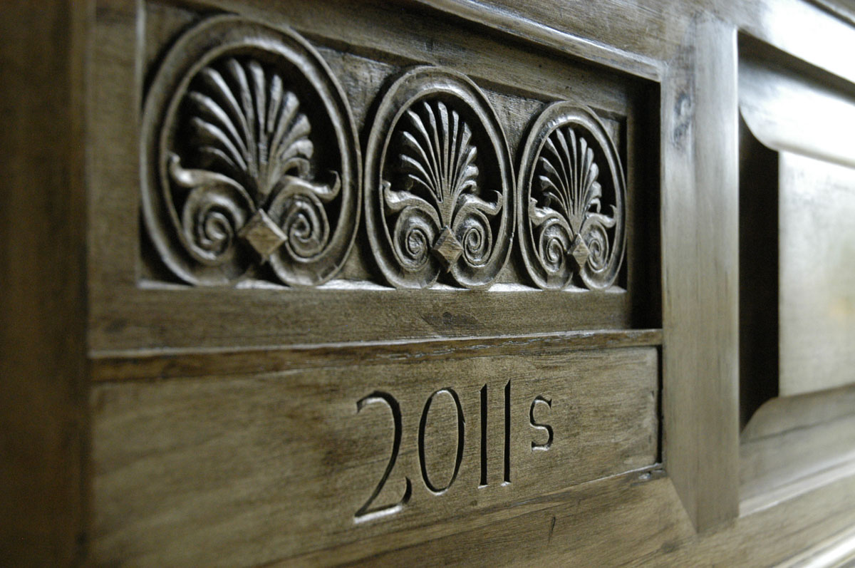 | The alder cap on the top of the chest walls are prepared for inset hinges. |