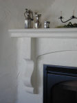 For Studios projects requiring scaffolding, this painted-wood brush holder was made to simply drop in place on top of the side of the scaffolding (a ProJax Multi-Purpose unit manufactured by bil-jax) that has served very well for quite a few years.