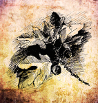 The image whose serial number ends in 001 presents the pen and ink drawing superimposed over a digital background. The image whose serial number ends in 000 presents the pen and ink drawing with a paper background only... Read more »