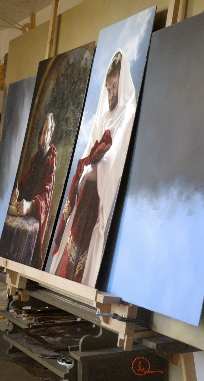 This use of the wall and shelves continued about eight years; that is, until I was commissioned to paint The Grey Havens, a horizontal oil painting 4 ft. high and 7 ft. wide. The south wall was the only place in the studio that could accommodate seven horizontal feet of a painting project.