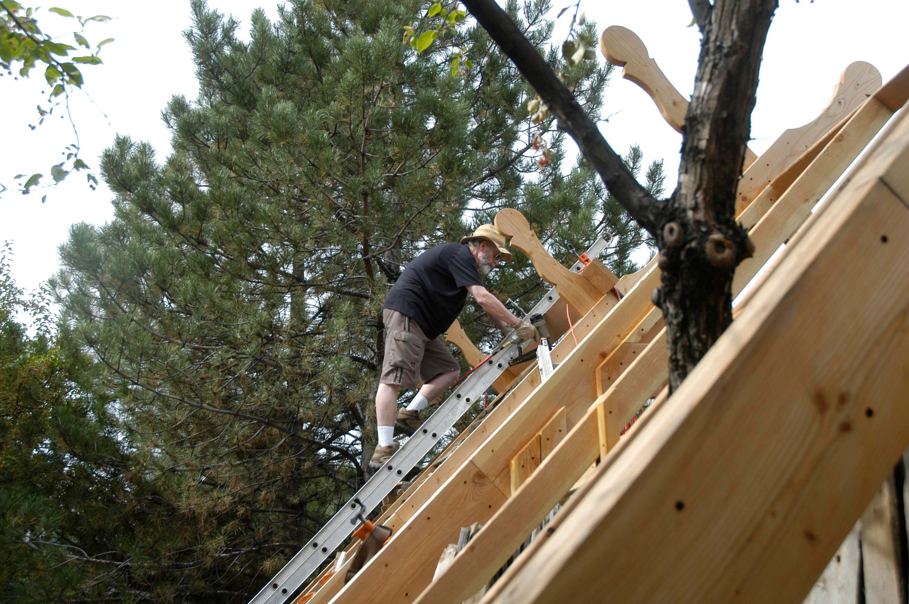 Strictly speaking, the first steps in constructing the barn involved dismantling these fence sections, removing fasteners, washing the grape-stakes, and sorting the boards according to kind and soundness, so that construction might proceed in as safe and orderly a fashion as possible.