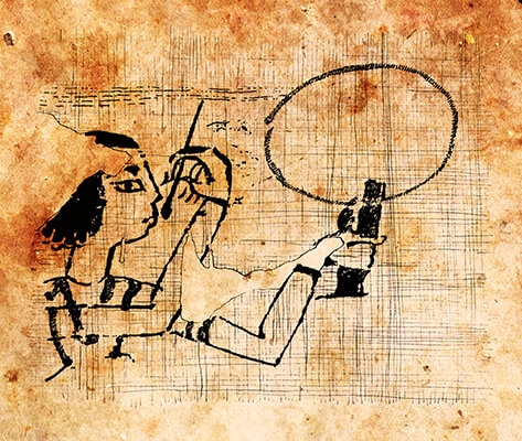 | Woman at Mirror, after a papyrus illustration by Ashton Young Pen and ink on paper with digital background, 2008 Copyright © by Ashton Young All Rights Reserved |