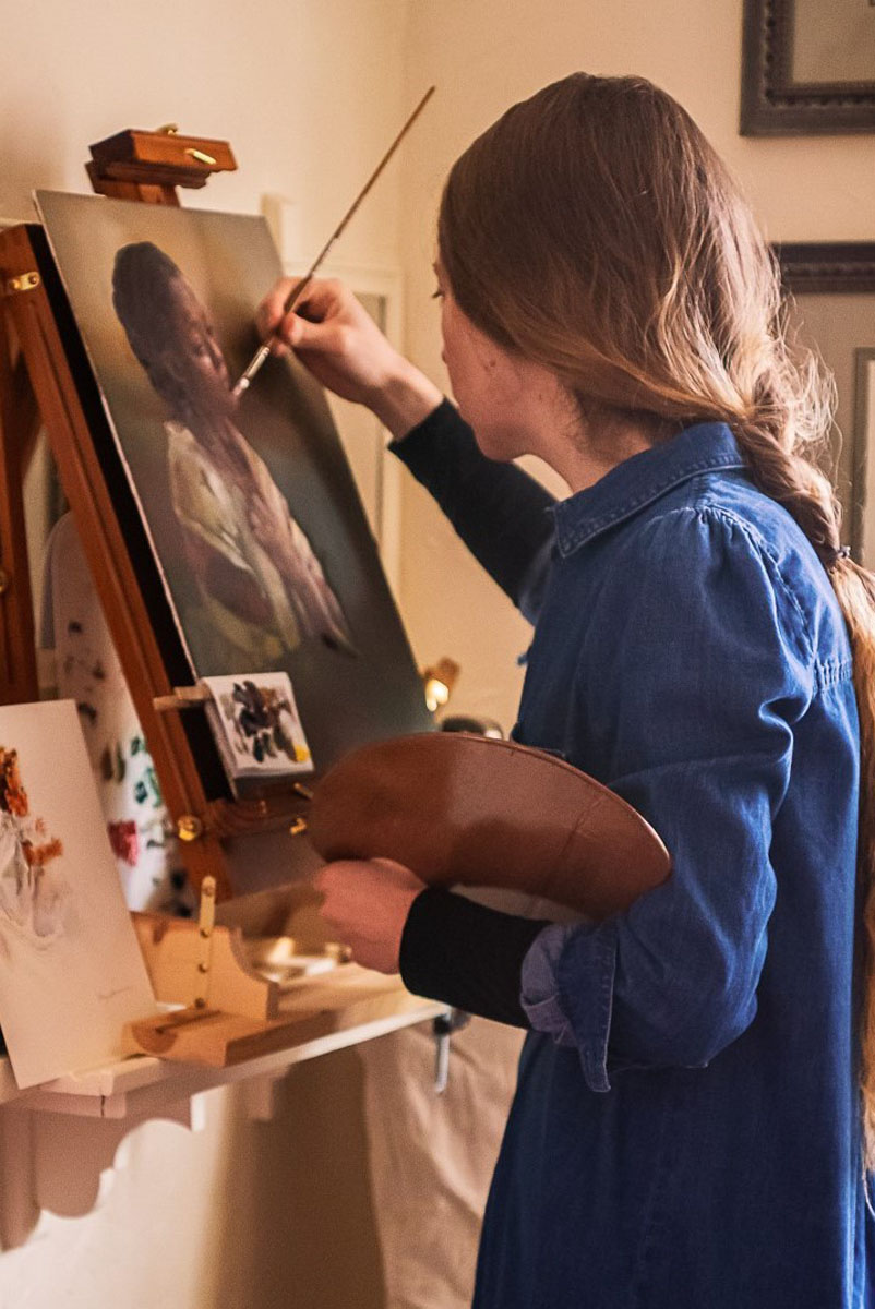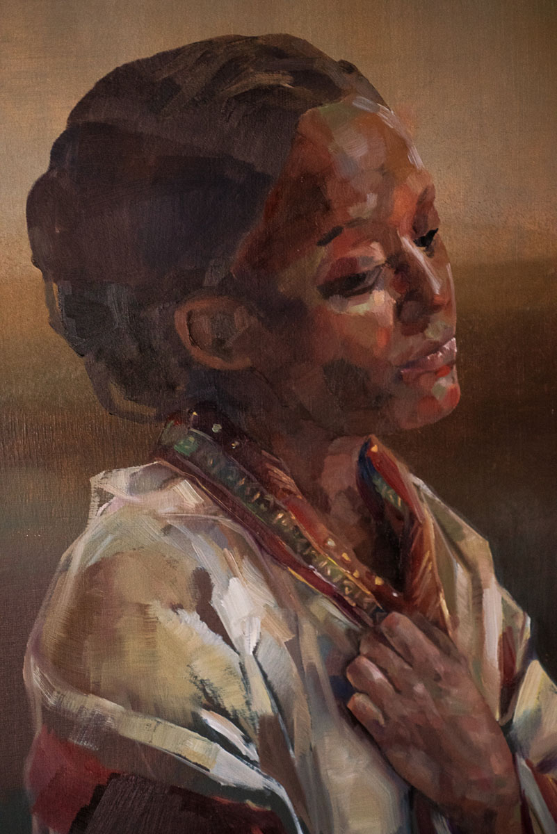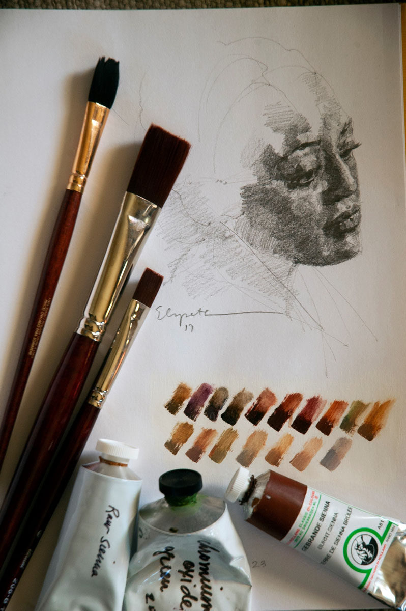 February 23, 2019 At Last I begin to really see why my previous painting project for Caldera Engineering was so necessary. As I have worked on the daughter of Onitah this week I have begun to use what I have learned these last few grueling months about how to listen to my heart; how to paint what is invisible—that which the Spirit impresses upon the eyes of my understanding. Rather than being a figure painter acting as though I were just a camera with a paintbrush, I paint what is true and beautiful as my Art Heart dictates. Yes, I use life to directly inspire that truth and beauty at the end of my brush, but my visual idiom (as Dad would call it) is changing to be a sketchy, scumbled-over-layer of color symphony atop careful and still painstakingly realistic under-layers. I enjoy what is emerging.