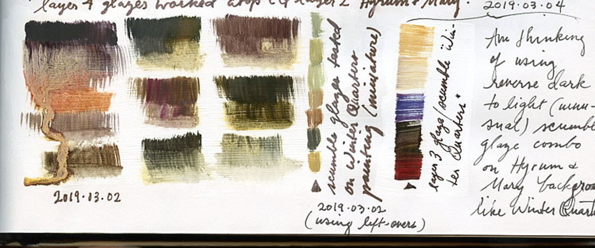 February 23, 2019 I live, breathe, eat, and sometimes even dream, the Smith family. I began Hyrum and Mary in the autumn of last year and have been using scraps of paint during the evenings over the last three weeks to build up a moody, green under-hue gradient (now in its third layer) upon which the subject will emerge.
