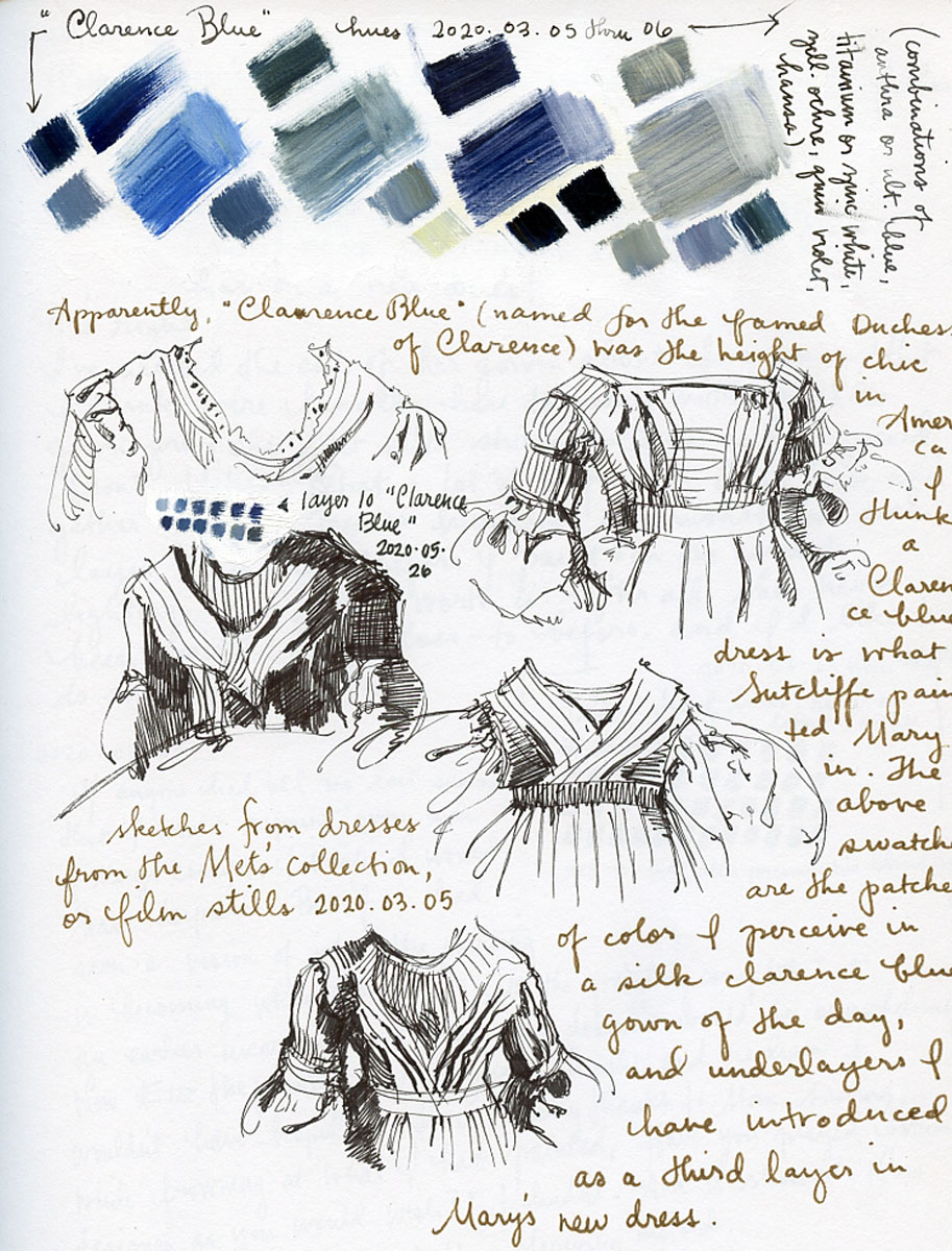 March 18, 2020 Work on Mary's makeover has been just that: WORK. My father laughed yesterday and said, "Well, Mary is the most clothes-horse subject I've ever seen you paint. Every time I walk past your easel, she has on a new dress!"